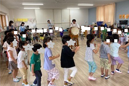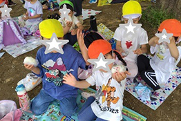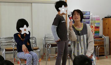 3、4、5歳児クラスは毎月お誕生会を行い、5歳児がパネルシアターや手遊び、わらべうたなどをみんなの前で披露してお祝いしています。